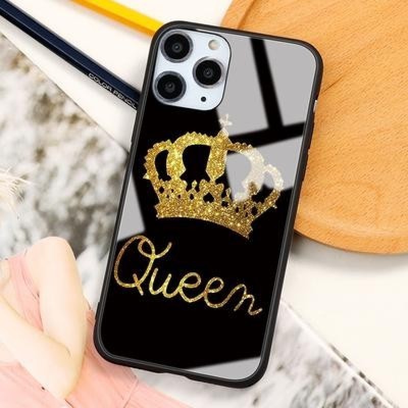 Король и королева Корона Пара Жесткий закаленный стеклянный чехол для телефона для iPhone SE 2022 13